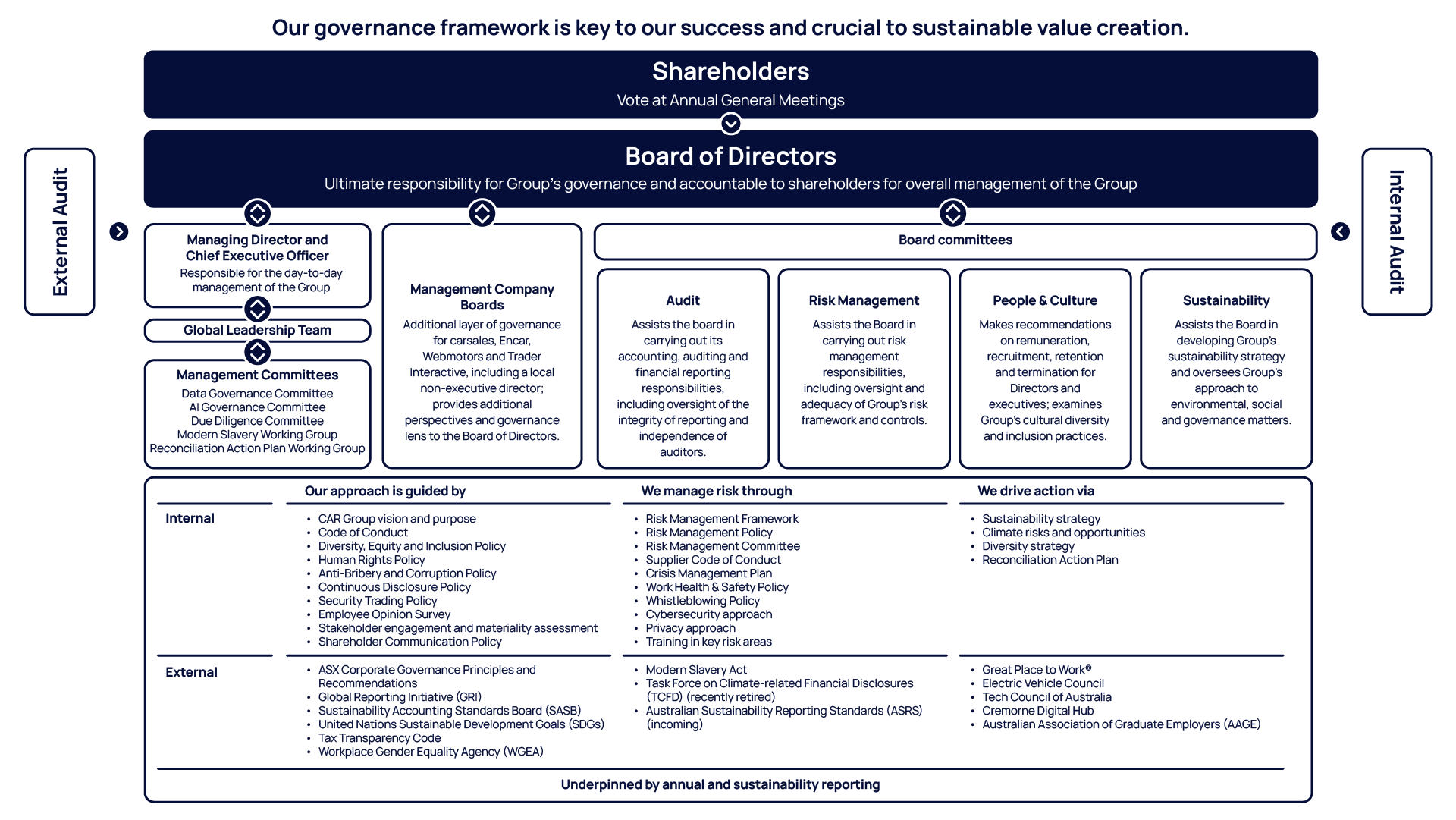 CAR Group is a company with a strong moral compass and is committed to strong corporate governance and complying with both the letter and spirit of the law. We build and maintain an ethical culture of integrity, transparency and accountability at all levels.